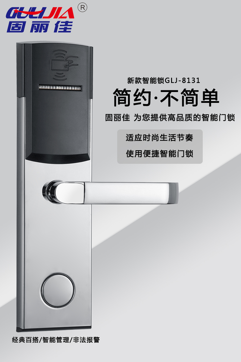 該款GLJ-8131不銹鋼酒店鎖,表面亮鉻處理,美觀耐用,永不褪色!有著經(jīng)典百搭、智能管理、智能防盜等多種特點(diǎn)。美麗的外觀及精美的設(shè)計(jì)讓您的酒店更加高大上,給客戶留下深刻印象。固麗佳酒店鎖防盜功能升級(jí),安全,高檔,豪華,為您提供高品質(zhì)的智能門鎖!