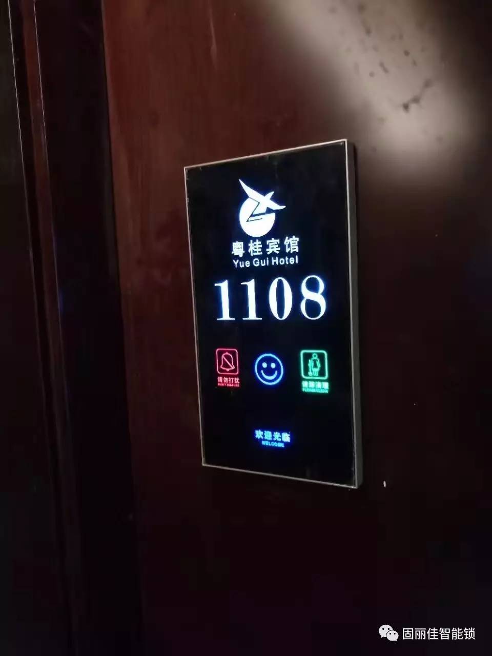 廣州粵桂賓館此次升級(jí)裝修與我們固麗科技合作安裝了固麗佳GLJ8928-FH的新穎高端款酒店電子門(mén)鎖與配套的定制電子門(mén)顯,此款酒店鎖是可以根據(jù)酒店要求定制LOGO,起到更好的展示作用;同時(shí)背面的面板設(shè)計(jì)也更加利于以后更換電池,加上精美的定制電子門(mén)顯使得酒店顯得更加的高端智能化。