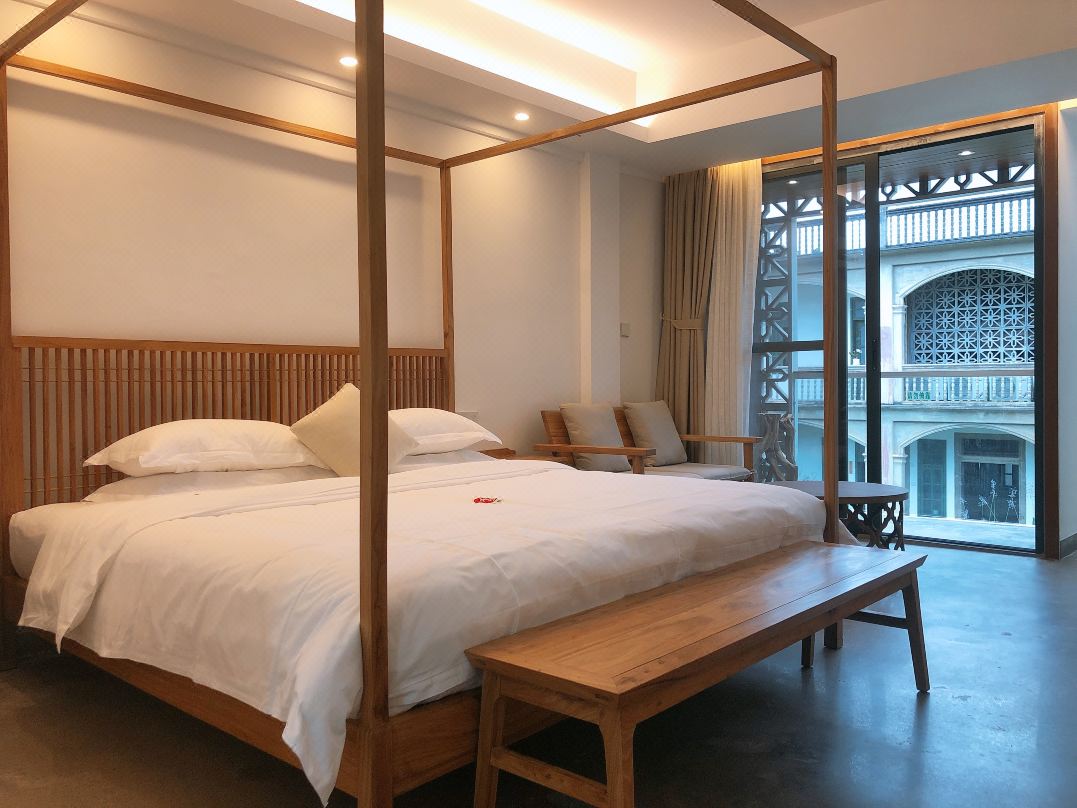 民宿的房間布置很精致雅觀,綠色窗臺顯得洋氣,桌、椅、床、凳充滿了復古的氣息。
