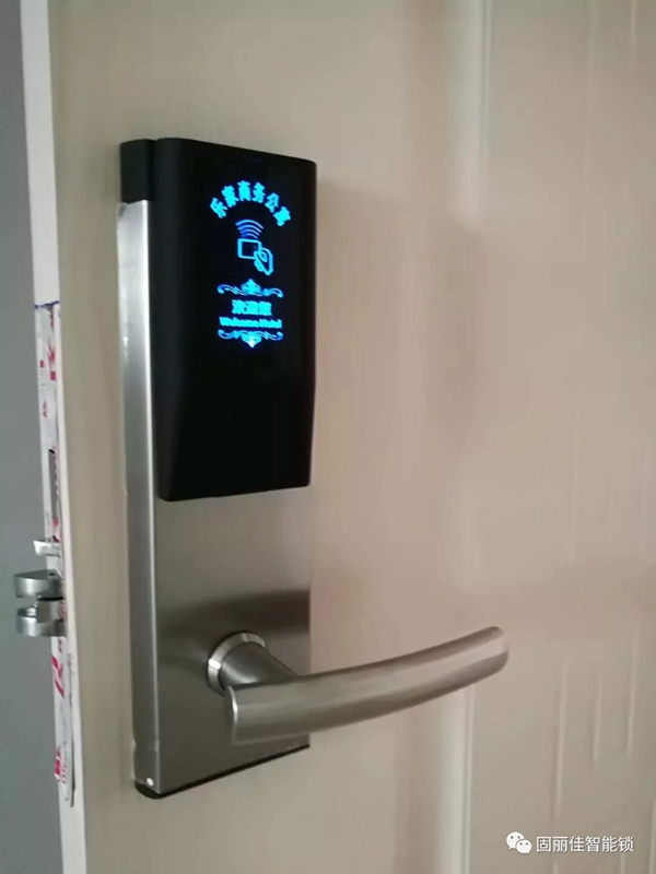 佛山樂家公寓此次與我們固麗科技合作,選擇安裝了固麗佳GLJ-8138FS電子智能門鎖共159套,此款智能鎖為不銹鋼材質(zhì),顏色樸實(shí)耐看,性價(jià)比極高而且刷卡感應(yīng)區(qū)顯示面板可以個(gè)性化定制酒店名稱和品牌LOGO,彰顯了酒店特色!