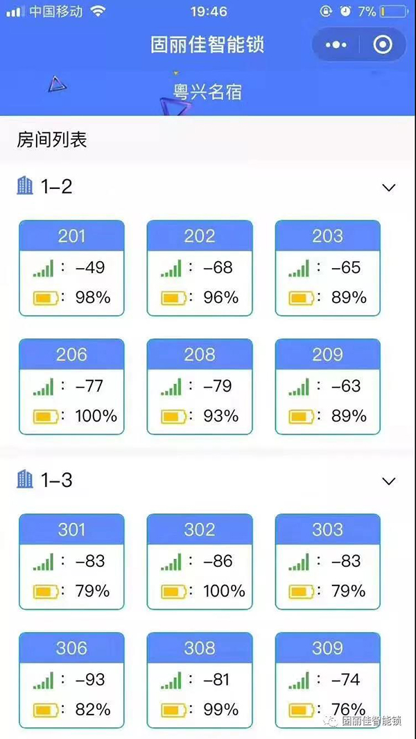 廣州上下九十八甫路粵心民宿精品酒店公寓此次選擇安裝了固麗佳GLJ-9899LoRa無線聯(lián)網(wǎng)密碼鎖。此款智能鎖外觀高端大氣,是固麗佳研發(fā)生產(chǎn)的專利產(chǎn)品。固麗佳LORA無線聯(lián)網(wǎng)鎖可實(shí)現(xiàn)密碼開鎖信息實(shí)時聯(lián)網(wǎng)監(jiān)控、手機(jī)開鎖,密碼開鎖,二維碼開鎖,不需布線就可以實(shí)現(xiàn)遠(yuǎn)程開鎖、遠(yuǎn)程鎖定鎖、遠(yuǎn)程送電斷電,防飛房,防欠租,還可電腦端手機(jī)端同步在線!功能強(qiáng)大,是精品特色酒店,高端公寓首選之良器!
